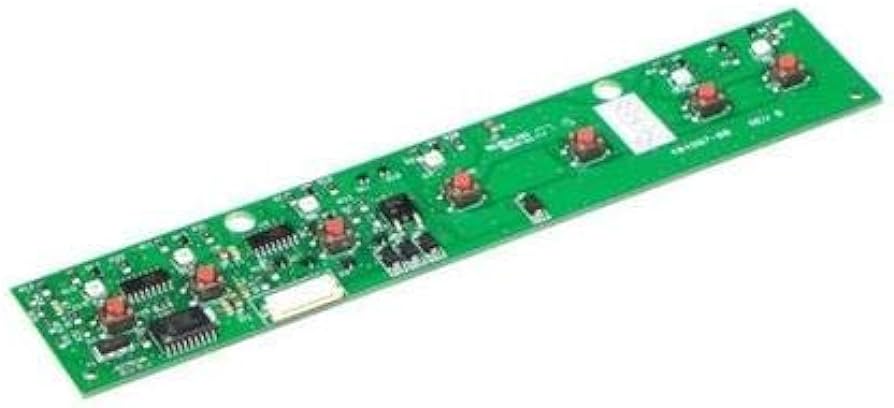 Dispenser control board 241708307 controls water and ice dispenser operations in the refrigerator door.