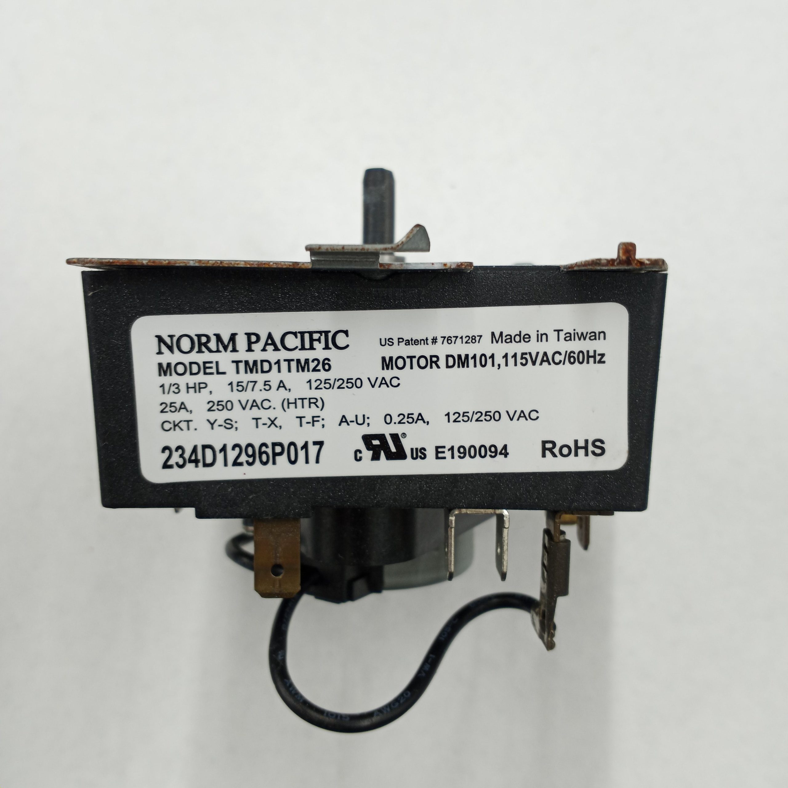 This is a used replacement for GE General Electric Dryer Timer Control. It is Rated at 1/3 HP and 125/250 VAC.