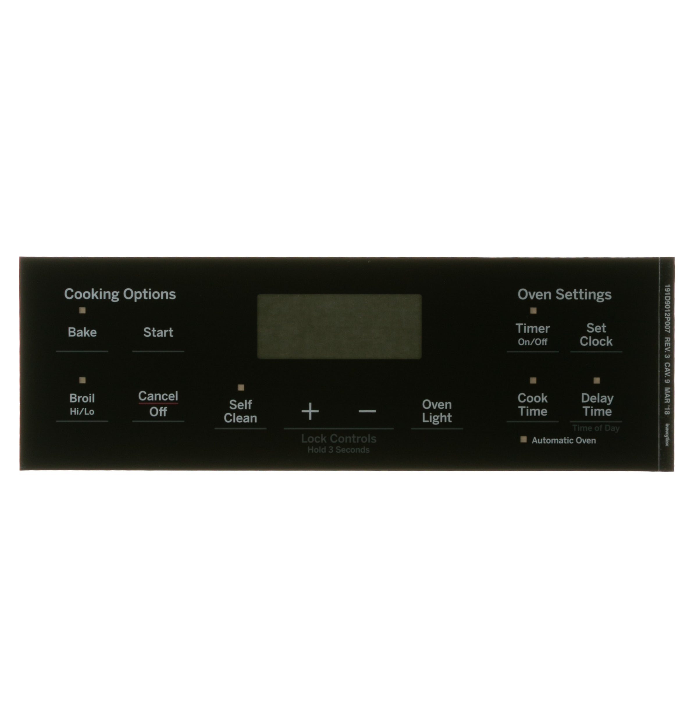 This oven control overlay (part number WB07X26647) is for ranges.
