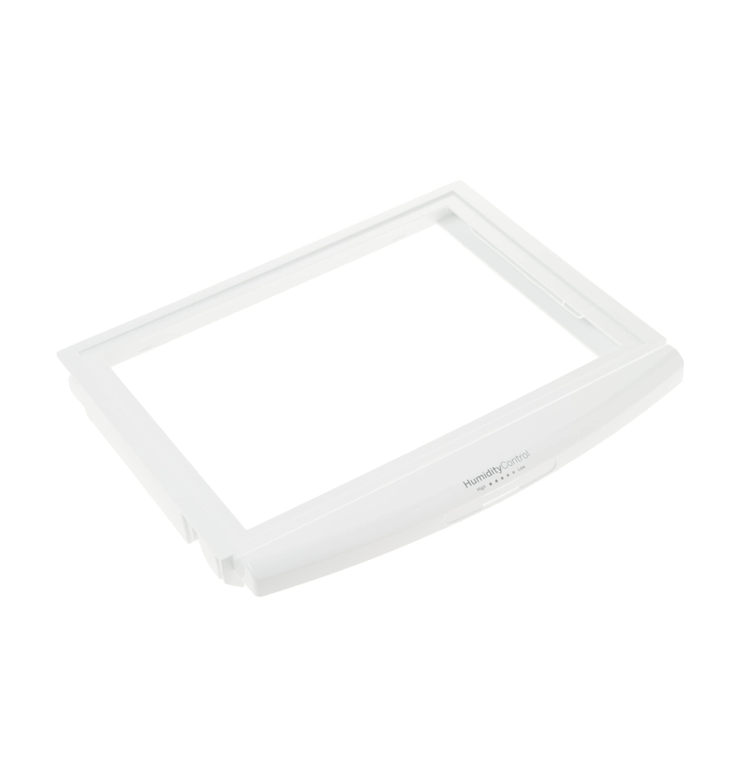 Crisper drawer cover frame WR32X26245 supports the crisper drawer and holds the shelf that covers the crisper drawer. Order the shelf insert separately if needed.