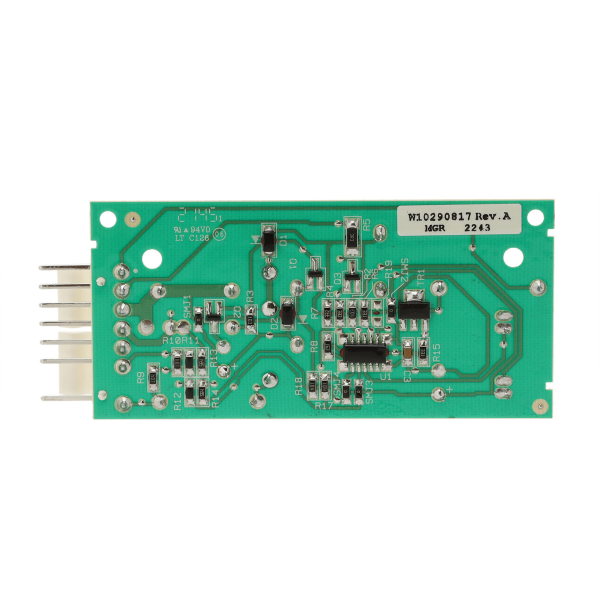 Ice maker optic board set W10757851 senses ice cube level in the ice bucket and shuts off ice production when the bucket is full. Set also prevents the ice maker from ejecting ice when you open the freezer door. Set includes emitter and receiver optic boards.