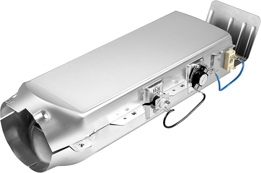 The DC97-14486A Dryer Heating Element Assembly is a complete and ready-to-install unit that includes the heating element, housing, ducts, and thermostats/thermal fuses pre-assembled. It is a common replacement part for Samsung dryers that no longer produce heat or produce insufficient heat. When installing, ensure the power to the dryer is disconnected to maintain safety.Â