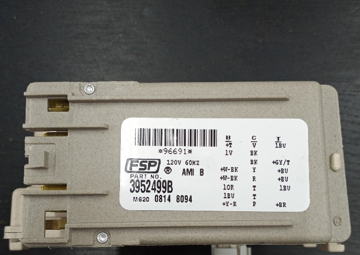 Washer timer WP3952499 controls the electrical components and the duration of the washer’s cycles.