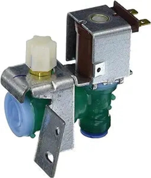 Water inlet valve WPW10238100 supplies water to the refrigerator ice maker and water dispenser.