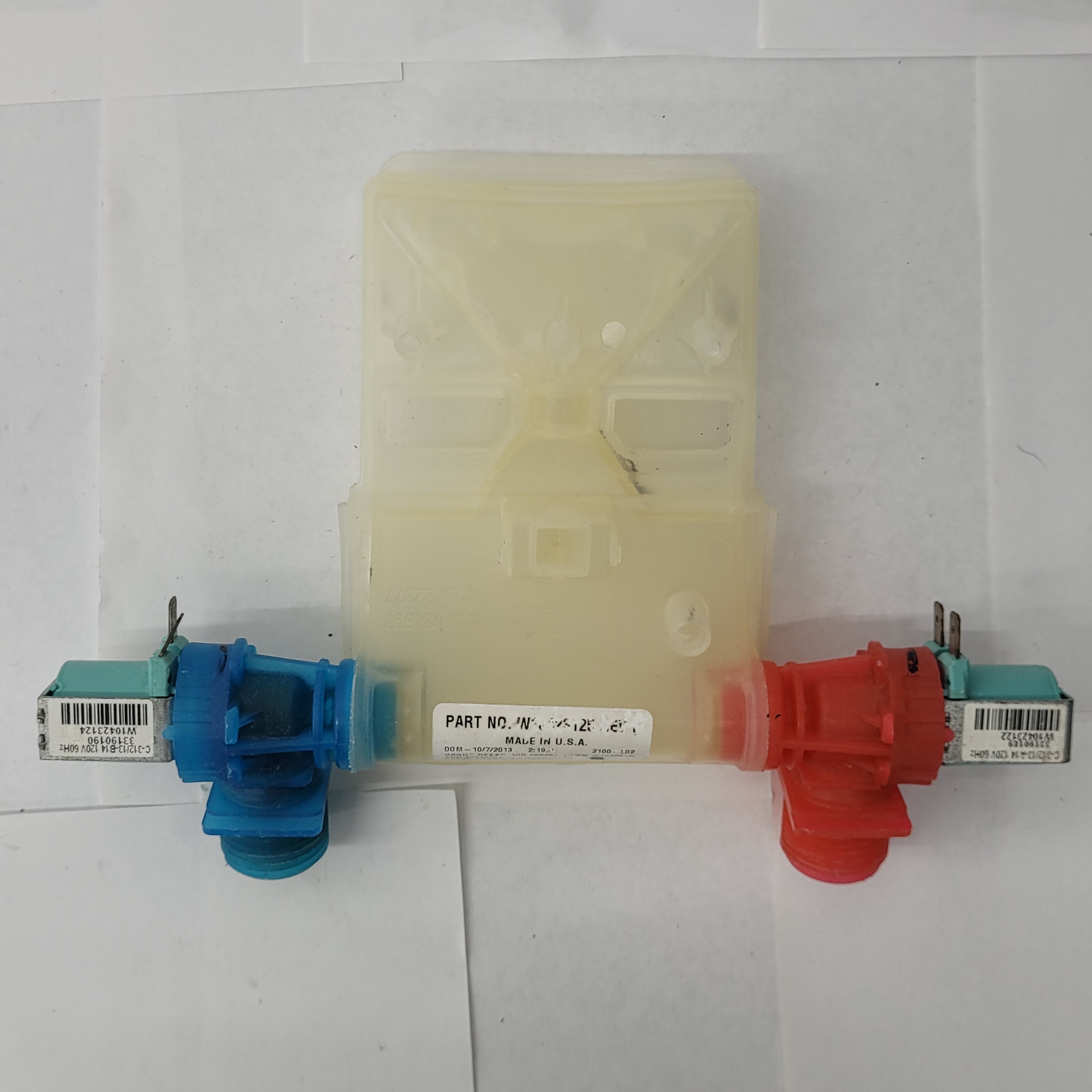 Water inlet valve WPW10683603 controls the water flow into the washer.
